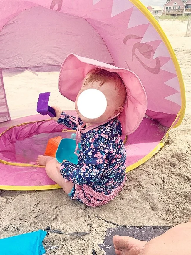 Pop Up Tent - Sometimes little ones need a safe space, their own space to play, a place to hide from the sun, or a cool spot to nap. A pop up tent offers all of the above and is a must-have beach item for a baby.