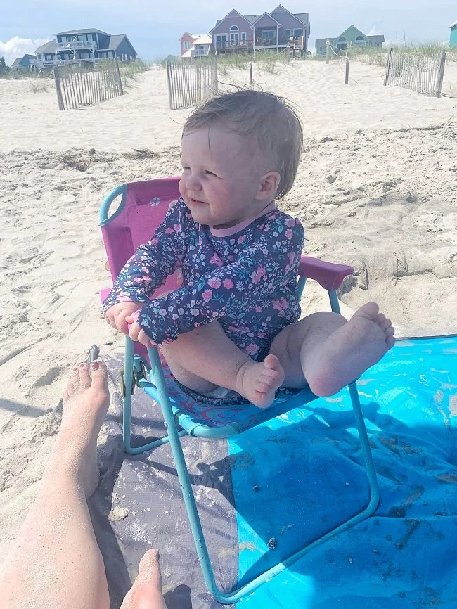 We are fortunate enough to be a quick 45-minute drive from the beach so we go all the time in the summer! Some days it’s a quick after-work drive to eat a picnic dinner and watch the sunset. Some days it’s spending the entire day relaxing on the beach, playing sand volleyball or Spikeball, and swimming. Chris and I couldn’t wait to take E to the beach for the first time last year, but we quickly realized that there were a few adjustments that needed to be made to make beach days with a baby easier and enjoyable for everyone involved. Here are our tips and tricks for taking baby to the beach and having the best beach days!